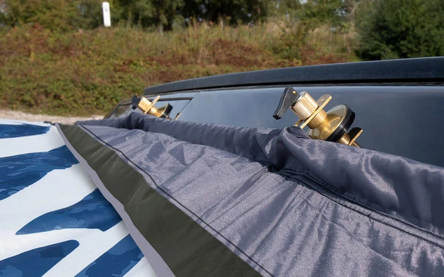 Die vier extra starken Klettbänder bieten Dir die Möglichkeit den KADOR an Deiner Fahrzeug Reling zu befestigen.