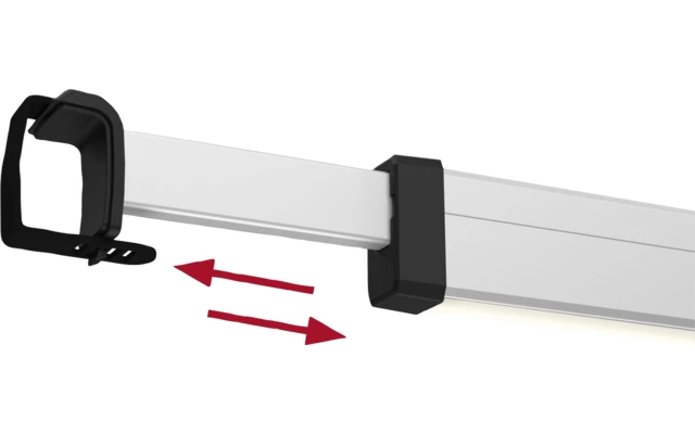 Neue Spannstange fĂŒr die Markise F40van, fĂŒr ein optimal gespanntes Tuch. Durch die Montage senkrecht zu den Markisenarmen bietet die Spannstange einen höheren Windwiderstand und verhindert die Bildung von WassersĂ€cken bei Regen. AuĂerdem ist diese mit LEDs ausgestattet, um den Urlaubsraum zu beleuchten.