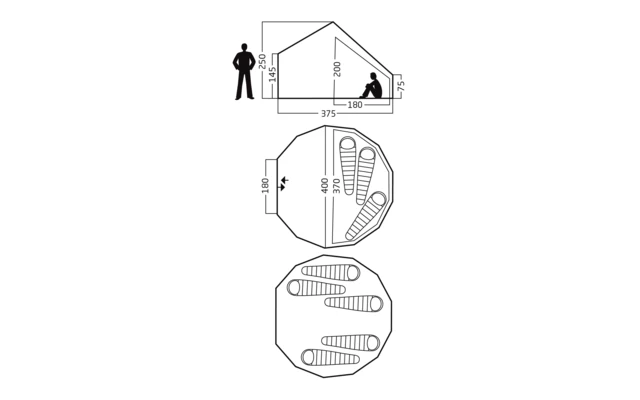 - Ăśberzelt (L Ă— B Ă— H): 375 Ă— 400 Ă— 250 cm