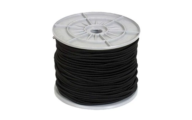 Schwarzes Elastikseil mit einer Dehnung von 120 %. Dieses wird in den meisten ZeltgestÀngen verwendet.