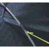 Die Kombination aus Kuppel und kurzem, quer verlaufendem Firstpfosten bietet einen flexiblen Wohn-, Koch- und Stauraum mit zwei Veranden und einer hervorragenden Innenhöhe und -breite für drei Personen. Das Design umfasst Optionen zum Öffnen der Außentüren, um einen einfachen, geschützten Zugang zu ermöglichen, sowie eine Querbelüftung und eine großartige, windgeschützte Aussicht nach draußen.