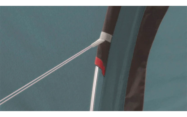 Verriegelungsspitzen und doppelte Ă–sen in robustem Gurtband sichern die Innenstangen mit der Firststange.