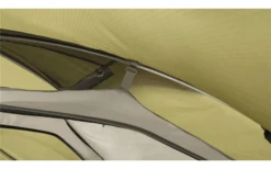Die Kombination aus Kuppelkonstruktion und kurzer, querlaufender Firststange bietet flexibel nutzbaren Wohn-, Koch- und Stauraum. Dank der besonders großen Höhe und Breite im Inneren können die beiden Bewohner nebeneinander sitzen. Die zwei Eingänge bieten den beiden Campern bequemen Zugang zum Zelt sowie diverse Möglichkeiten zum Öffnen der Türen, die einerseits Schutz vor Wind gewähren, mit den Netzeinsätzen in den Türen andererseits aber auch für eine exzellente Belüftung sorgen. Die fest verankerten Stangenenden und die Doppelösen im robusten Gewebe geben dem Innengestänge sicheren Halt. Die Firststange sitzt zudem fest in einem robusten Stangenkanal.