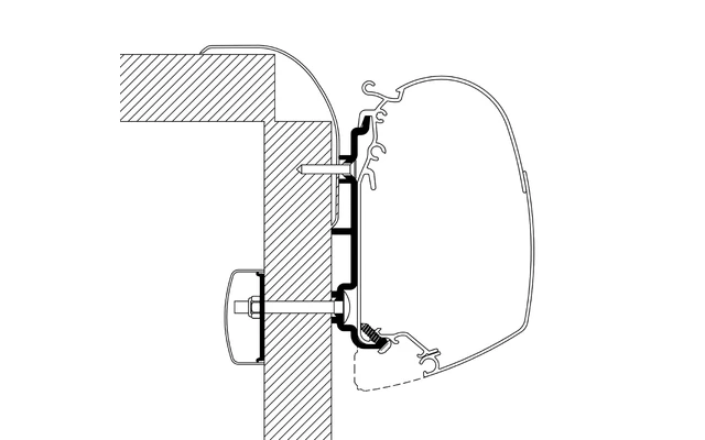 Adaptersatz zur Montage einer Thule Markise an ausgewÀhlten Fahrzeugen wie VW T5/T6 Minivan Reimo, Ford Transit, Ford Tourneo Custom Minivan.