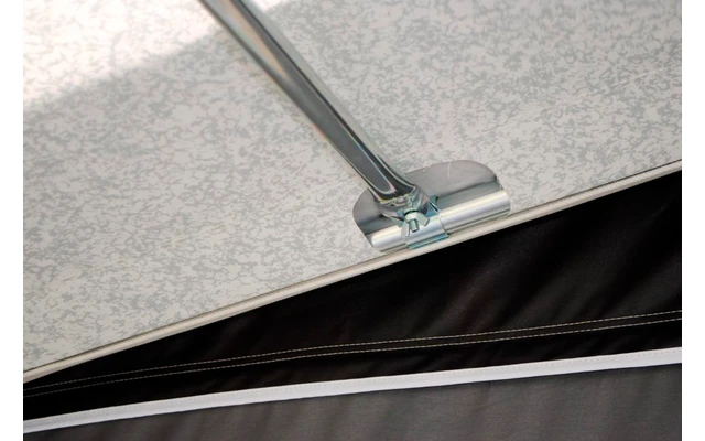 Zum Standardlieferumfang des Patio gehören 2 Seitenwände mit Fenster. Diese sind durch Reißverschlüsse abnehmbar. Powergrips, Sturmgurte und Gardinen für die Seitenwände sind gegen Aufpreis erhältlich. Das Patio wird serienmäßig geliefert mit Keder und 3 Dachhaken zur Befestigung direkt an den Wohnwagen. Die Seitenwände können Sie nicht benützen beim Patio direkt am Wohnwagen.