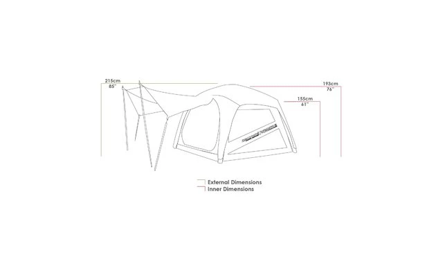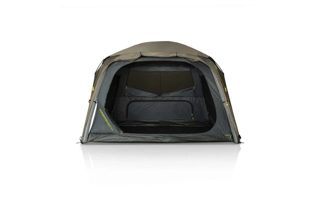 Dank des aufblasbaren GestĂ€nges lĂ€sst sich das Zelt in wenigen Minuten aufbauen, die mitgelieferten Stirnstangen maximieren das Innenvolumen. Das Innendach besteht komplett aus Mesh, wodurch die warme Luft entweichen kann und die Kondensation minimiert wird. Je nach Wetterlage können Sie das AuĂenzelt abnehmen, die seitlichen Innenfenster mit einem ReiĂverschluss verschlieĂen und den Blick auf den Sternenhimmel genieĂen.